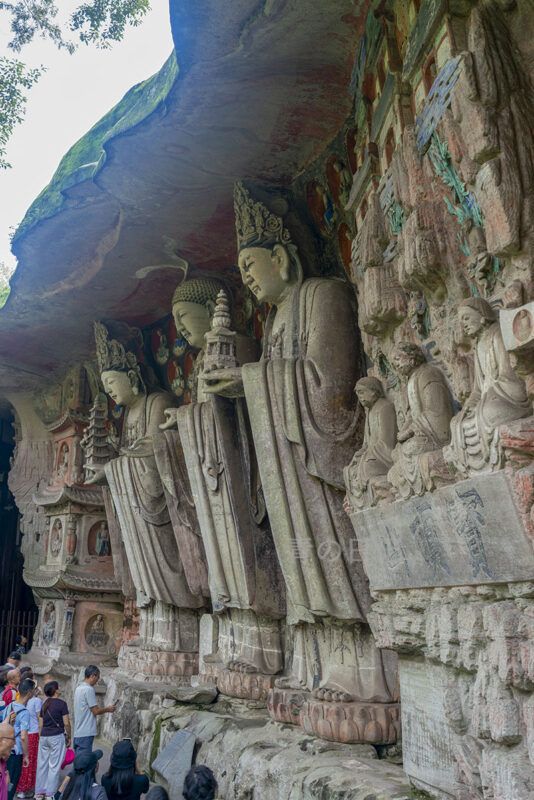 大足石刻是唐末、宋初时期的宗教摩崖石刻,以佛教题材为主,尤以北山摩崖造像和宝顶山摩崖造像最为著名,是中国著名的古代石刻艺术。这次参观的是宝顶山石刻。