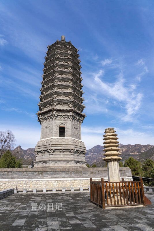 塔的四面各建有一座三米多高的小唐塔,为唐景云二年(公元711年)至开元十五年(公元727年)间所建。五塔形成一个整体,为中国金刚宝座塔(五塔)的早期实例。寺内及周围山上还有唐、辽、明各代建造的砖、石塔十余座。