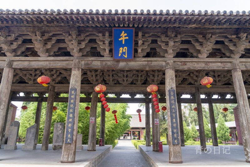 山西万荣东岳庙始建于唐贞观年间,元至元二十八年至大德元年重修,明清时期又多次重修。一条中轴线上,坐南朝北依次有飞云楼、午门、献殿、享亭、正殿和阎王殿,属于宫殿格局,如此高规格,是因为该东岳庙祭祀的是主管人间生死和阴曹地府的东岳大帝,即小说《封神演义》中的黄飞虎。