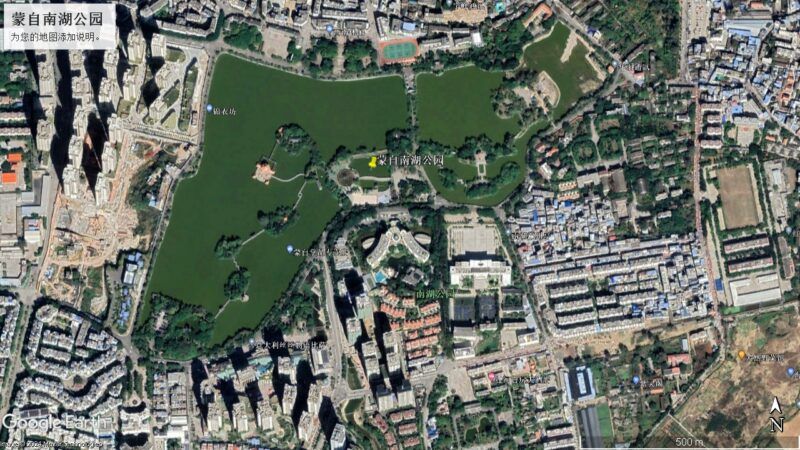 南湖,原名草海,因位于蒙自县城南,故称“南湖”。明朝时知府钱邦称带领民众,将湖中淤泥杂草取出,垒成3座小山,分别以神话中仙人居住的蓬莱、瀛洲、方丈三仙山为名;并从县城十几里外引来酒鸡泉、法果泉等四泉之水灌入湖中,形成碧波荡漾的大小两个湖泊。湖面积30万平方米,湖堤种植垂杨,三岛有游路相通,广植花木。湖中有各式亭台楼阁、奇花异卉,环境清幽,因有文人学士常来相聚,吟诗作赋,攻读诗书,又有“学海”之称。