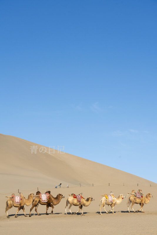 鸣沙山在天气晴朗时能发出像“丝竹管弦”的声音,属于敦煌八景之一的“沙岭晴鸣”。