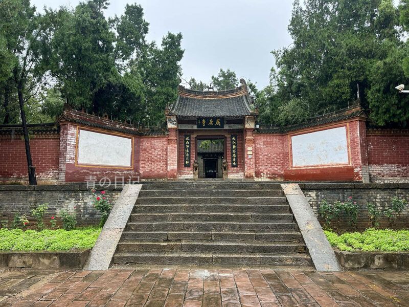 广庆寺位于东坡湖西北方向,始建于宋仁宗年间,后经元至顺年间改造而成,是一座我国传统的四合院寺院建筑。主要由南天门、天王殿、大雄宝殿、东西厢房和钟、鼓楼组成。广庆寺其建筑结构与众不同,它汇集了元、明、清三个朝代的建筑特点,最明显的特征就是一进三院,寺祠合一,这在全国是极为少见的。