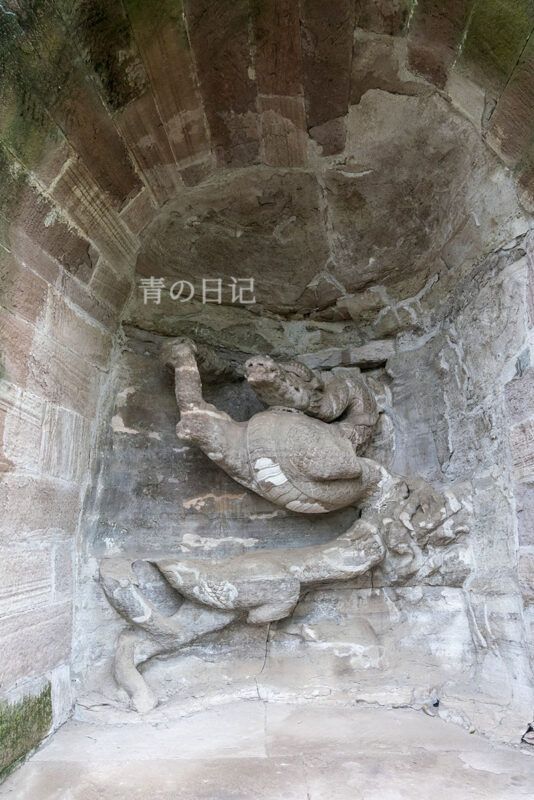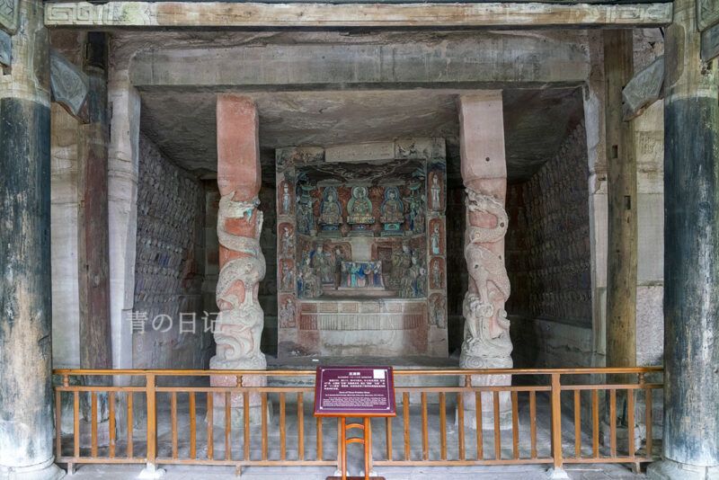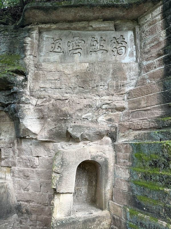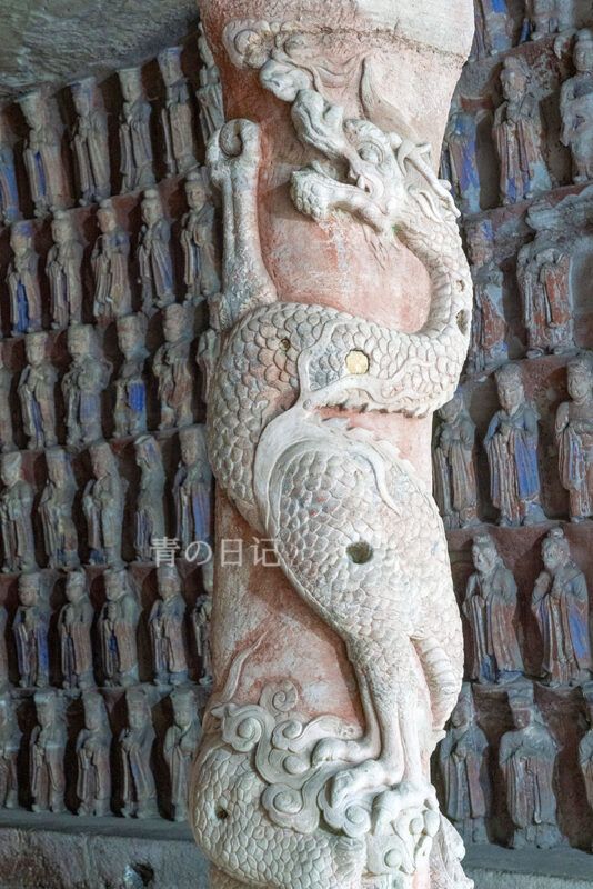 龙洞,宋刻,窟形,高5.46米,宽2.10米,深1.85米,后壁有一龙,身有鳞甲,前爪凌空,后爪蹲地,道教将龙称神龙,取其变化莫测,威武神勇;最主要的作用是助道士上天入地,沟通鬼神。