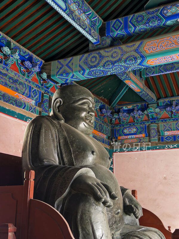 弥勒殿(天王殿),建于明朝,面阔三间,单檐歇山顶,柱子未包入墙中。殿内正中供奉铜制弥勒佛,高2.5米,采用五代时期布袋和尚的造型,为明代造像。原来殿内两侧有四大天王像,毁于北洋政府时期。弥勒殿前左右两侧有钟楼、鼓楼,均为二层。
