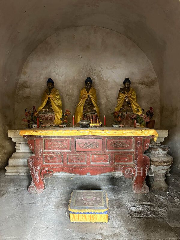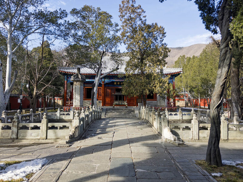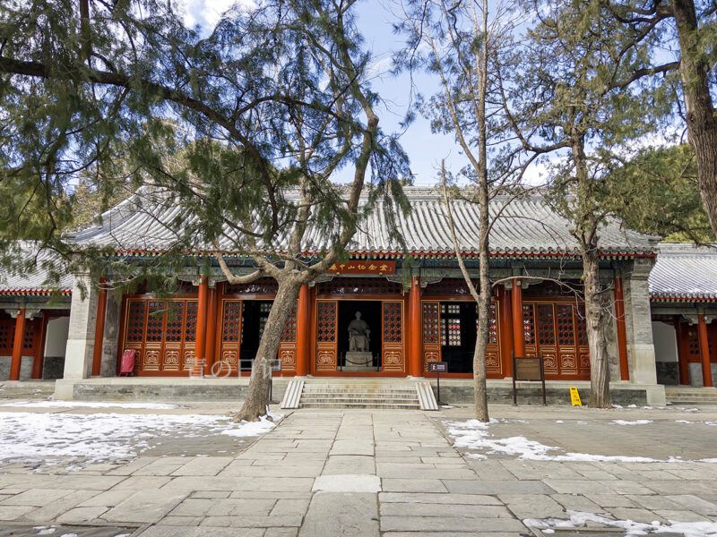 山门殿(内山门),建于明朝,面阔三间,单檐灰瓦歇山顶,雅伍墨旋子彩画,明间开券门洞,两次间各开一券顶窗,券脸刻有回云纹。殿内两侧是两尊金刚力士泥塑像,俗称哼哈二将,文化大革命期间塑像被毁,现在的两尊塑像是1992年重塑,高4.8米,头戴宝冠,手执金刚杵,右像(东像)忿颜闭口为“哼”,左像(西像)怒颜张口为“哈”。