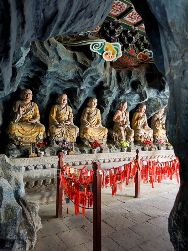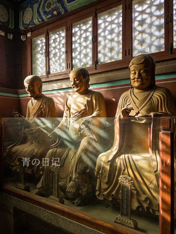 罗汉堂,位于孙中山纪念堂的南跨院,建于清朝乾隆十三年(1748年),仿杭州净慈寺而建,平面呈“田”字形,每面9间,中间形成4个小天井。堂内有500尊木质金漆罗汉,每尊高约1.5米,神态各异,造型生动。此外,中心是横三世佛,东、西、南、北各门口分塑有护法神韦驮天、地藏王、接引佛和疯和尚。在北面屋梁上还蹲坐着济公,传说济公因为替人打抱不平而迟到,所以没了座位,就爬上屋梁蹲坐在上面。关于罗汉堂中的五百罗汉还有许多传说,其中第295尊暗夜多罗汉和第360尊直福多罗汉传说是康熙帝和乾隆帝。在罗汉堂前有一抱厦,内有四大天王塑像。