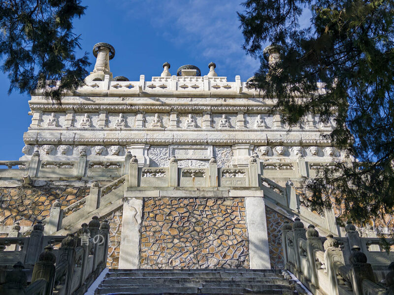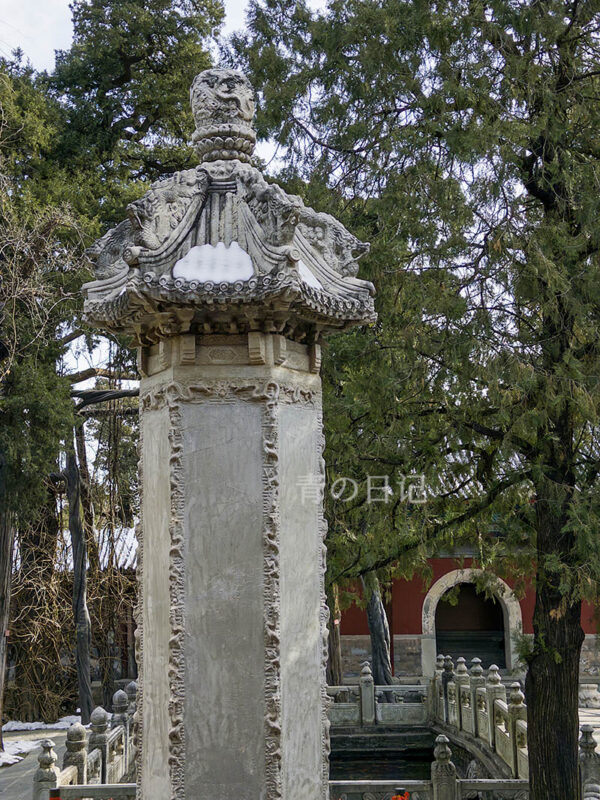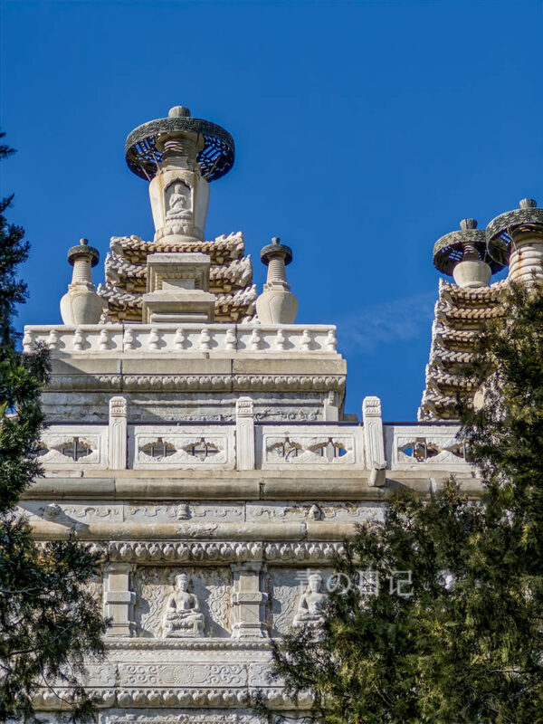 乾隆御制金刚宝座塔碑亭,建于清朝乾隆十三年(1748年),南北各一座。八角重檐,上檐为圆攒尖顶,檐下装饰石雕斗拱。亭内为穹窿顶,顶部有龙头藻井。亭内有《御制金刚宝座塔碑》,左亭内为满文、蒙古文,右亭内为汉文、藏文,碑文介绍了金刚宝座塔的由来。