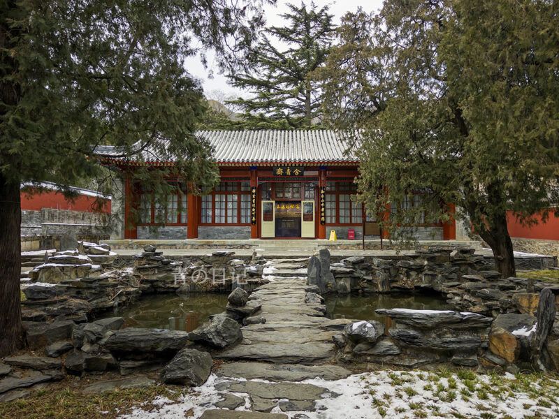 含青斋,原名涵碧斋,位于大雄宝殿北侧,建于清朝乾隆十三年(1748年),原为皇帝大臣休息之所,是行宫的第二组建筑。院门开在弥勒殿北侧靠西,为院墙上开的一个月亮门。含青斋共有前后两个院落,第一进正房三间,第二进正房五间。院内叠石为池,景致秀雅,有“云容水态”之称。含青斋是西山会议会址。1925年11月,邹鲁、谢持、张继等十多人反对孙中山的政策,擅自召开中国国民党一届四中全会,即西山会议。